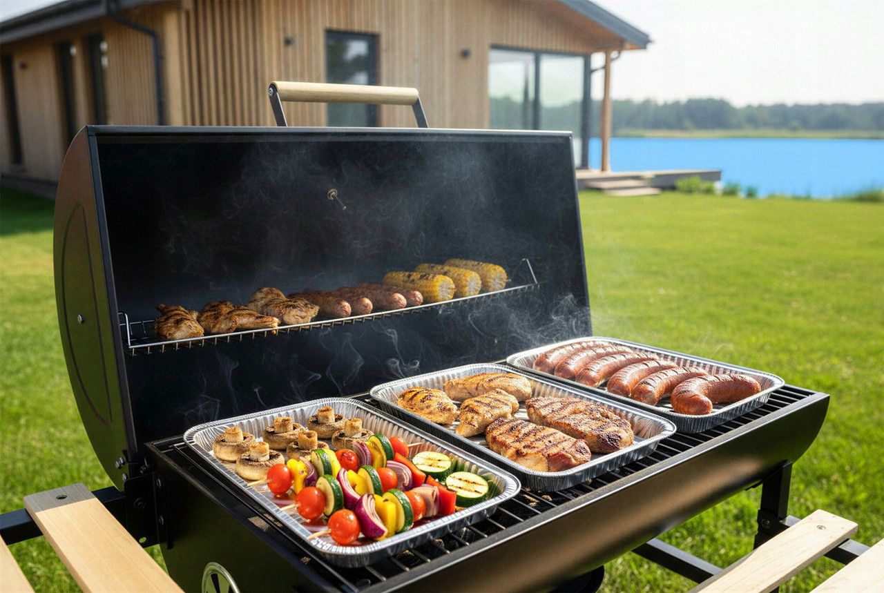 ✅ Димохід + Термометр: дозволяють повністю контролювати температуру для досягнення ідеального результату — соковитого м'яса та хрустких овочів.