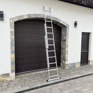 Алюмінієва драбина 3х7 HIGHER - технічний опис: Кількість сходинок: 3x7 Максимальне навантаження: 150 кг Модель: 3x7 / 3 елементи по 7 сходинок на кожному елементі Транспортна довжина: 1,91 м Максимальна довжина драбини (в розкладеному вигляді): 3,23 м Максимальна робоча висота: 4,20 м (у положенні приставної драбини) Вага: 11 кг Бічний профіль: 60x20 мм Довжина стабілізатора: 75 см Сходинки 25х25 мм Багатофункціональні драбини HIGHER характеризуються високою універсальністю і довговічністю. Драбини виготовлені з алюмінію найвищої якості, стійкого до погодних умов. Драбини легкі, що полегшує їх переміщення, і в той же час дуже міцні (вантажопідйомність: 150 кг). Міцні та довговічні стійки Рифлені протиковзкі сходинки Протиковзкі ніжки Поліамідні ролики Протиковзкий стабілізатор Багатофункціональне використання Можна розміщувати на сходах Система захисту від стирання направляючих Бічний профіль: 60x20мм Міцні сходинки Протиковзькі сходинки перерізом 25x25 мм, що використовуються в драбині HIGHER, кріпляться до профілю за допомогою 32-кратного пресування. Цей процес гарантує міцне з'єднання та естетичну обробку сходинок. Драбина набуває додаткової стійкості та міцності. Сталеві направляючі Оцинковані, тиснені, пофарбовані порошковою фарбою сталеві направляючі запевнюють безпечне використання. Завдяки міцним направляючим елементи драбини утримуються в правильному положенні, що значно підвищує безпеку при виконанні робіт на висоті. Поліамідні направляючі ролики У драбинах HIGHER застосовуються найкращі технологічні рішення, одним з яких є використання спеціальних поліамідних роликів. Завдяки роликам подовження драбини стало набагато простішим, а проблема стирання алюмінієвих профілів вирішена. Плавне і легке висування драбини на потрібну довжину без застосування сили або сторонньої допомоги. Безпечна розстановка Міцні, стійкі до погодних умов поліпропіленові ремені запобігають неконтрольованому розсуванню драбини. Лямки кріпляться за допомогою спеціальних рухомих пряжок. Блокувальні штифти Сталеві штифти з поліамідним покриттям захищають другий і третій елементи від надмірного розкладання. Протиковзкі ніжки Ніжки драбини і стабілізатора оброблені протиковзким гумовим пластиком, щоб запобігти ковзанню. Стабілізаційна планка на драбинах HIGHER фіксується 4 гвинтами для додаткової безпеки. Пластикові заглушки встановлені на кінцях драбини і захищають гострі кінці профілів драбини від ненавмисного травмування. Крім того, драбина оснащена захисними заглушками зі спеціальною посиленою конструкцією рами, виготовленою з високоміцного пластику. Спеціальні заглушки додатково виконують дуже важливу функцію: вони захищають місце кріплення стабілізатора до стійок драбини. Це запобігає тертю металу до металу.