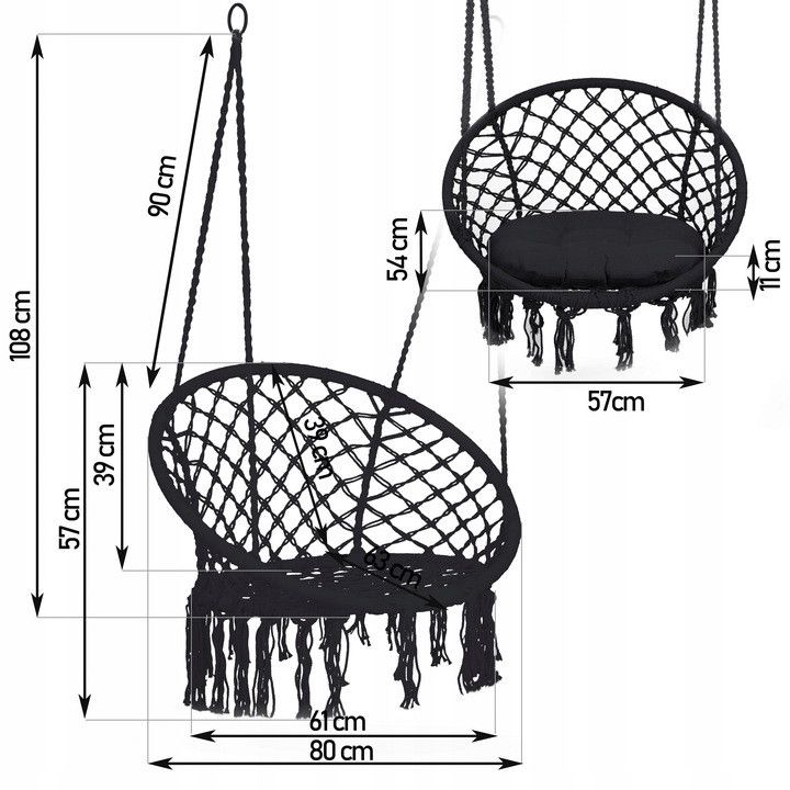 Підвісне крісло-гойдалка BOHO (чорне)