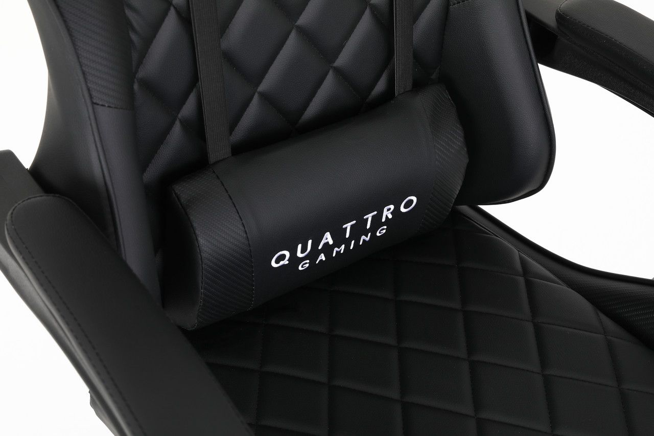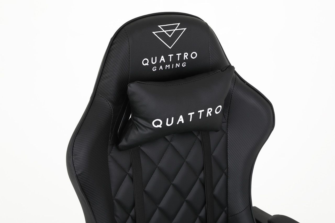 CARBON Quattro Gaming має оббивку з високоякісної екошкіри з ромбоподібною строчкою сидінні та спинці. Унікальністю даної моделі є карбонові вставки, що придають кріслу особливої елегантності.
