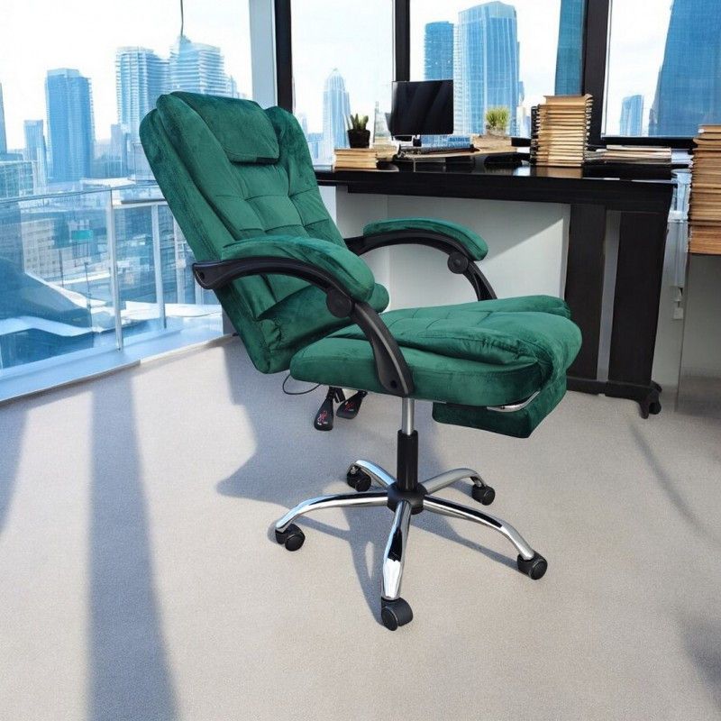 ОФІСНЕ КРІСЛО BOSS КО22 ✓ ЗРУЧНІСТЬ - зручні, широкі сидіння та спинка ідеально підходять до силуету сидячої людини. Високий вбудований підголівник і відповідний профіль гарантують функціональність і підтримку голови. Підлокітники правильної форми, що підвищує комфорт використання, а також навантаження на хребет. ✓ ВИСУВНА ПІДСТАВКА ДЛЯ НІГ - додатково крісло має висувну підставку для ніг, заховану під сидінням, що забезпечує комфорт використання та покращує кровообіг в ногах. Правильне положення мінімізує втому тіла і усуває м'язовий біль, викликаний неправильним положенням. ✓ ГУМОВІ КОЛЕСА - використання гумових коліс допомагає запобігти подряпинам на підлозі, і порізам на килимі. Колеса роблять підлогу безпечною, а переміщення на них тихе та комфортне. П'ятизіркова основа з подвійними коліщатками забезпечує стабільне пересування. ✓ РЕГУЛЮВАННЯ - крісло можна підлаштувати під індивідуальні потреби, завдяки чому ми отримуємо неймовірний комфорт використання. Висота сидіння регулюється. Також регулюється кут нахилу спинки (його можна зафіксувати в заданому положенні). ✓ ШВИДКИЙ І ЛЕГКИЙ МОНТАЖ - весь процес складання крісла швидкий, легкий і приємний. Це не повинно тривати більше 10 хвилин. ХАРАКТЕРИСТИКИ: колір матеріалу: зелений; матеріал: тканина; хрестовина: хром; колеса: гумові; механізм: важіль (метелик); розміри (довжина/ширина/висота): 60/65/110 см; регулювання висоти крісла: 102-110 см; максимальне навантаження: до 130 кг; вага крісла: 16 кг; вага з упаковкою: 17,8 кг.