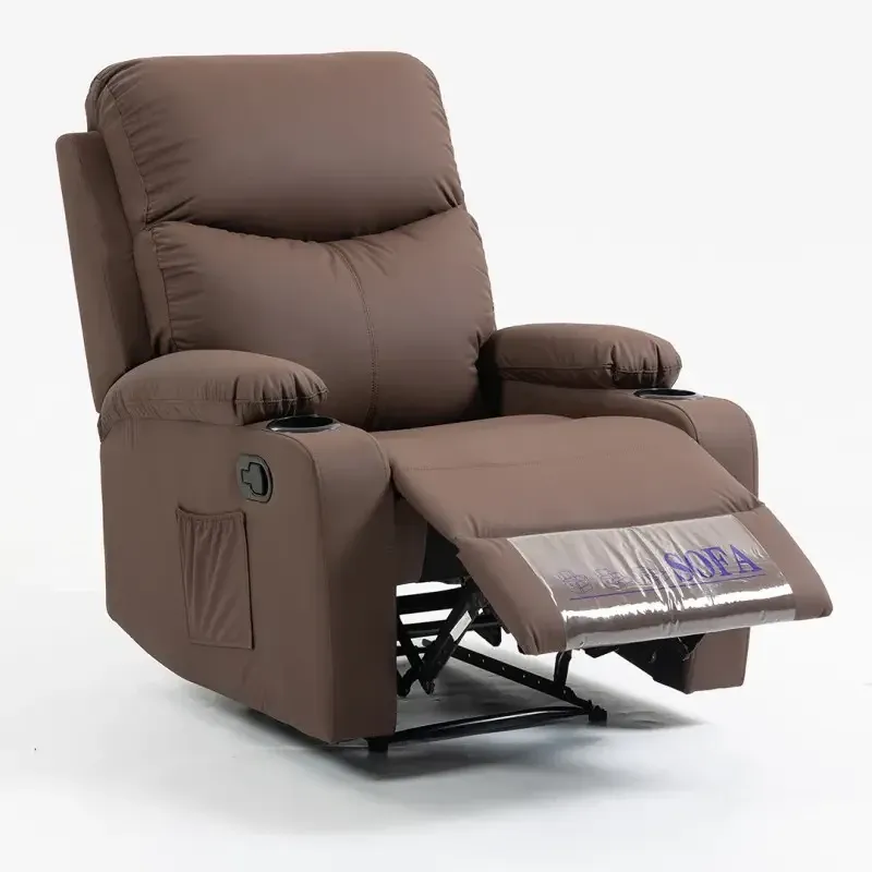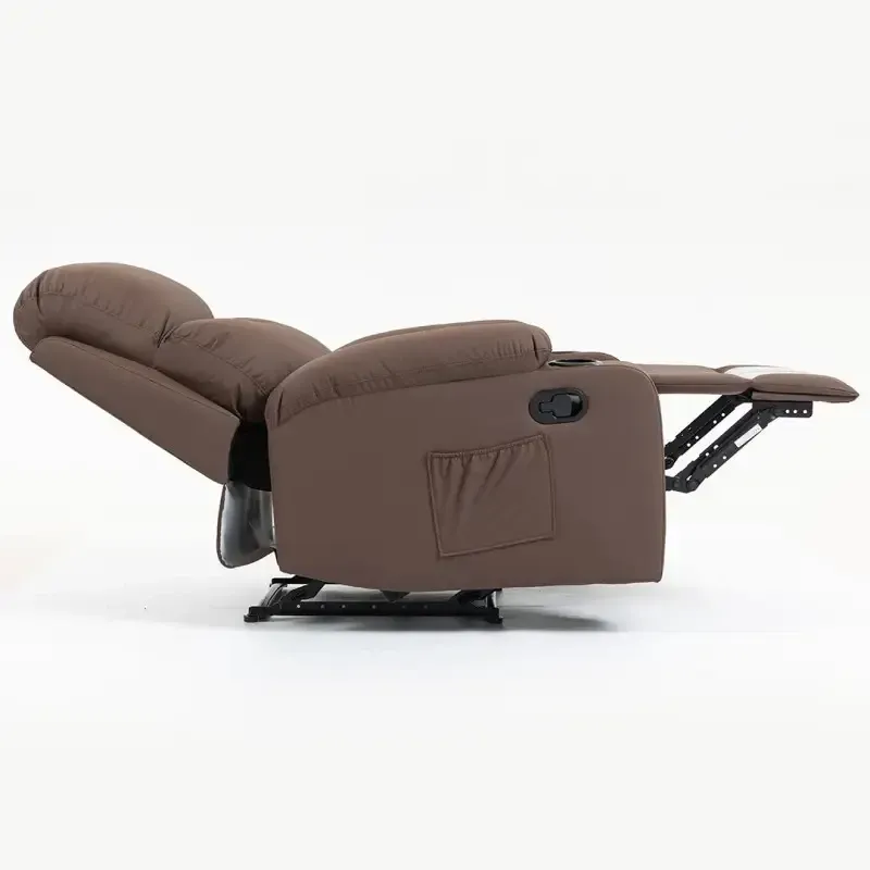 На боці підлокітника розташована зручна важільна система, яка дозволяє плавно висунути підніжку та розслабити ноги.