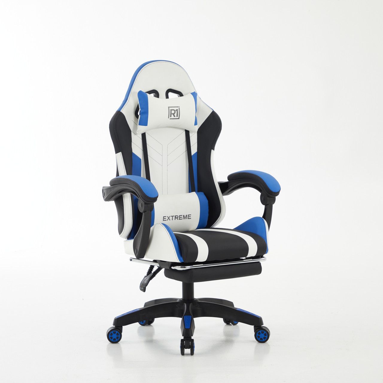 Комп‘ютерне крісло з підставкою для ніг EXTREME R1 Чорно-біло-синій
