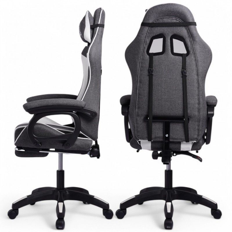 Представляємо сучасне ігрове крісло LevelUp KO29SZ, що ідеально підходить для любителів комп'ютерних ігор, які цінують комфорт та функціональність. Крісло оснащене низкою практичних рішень, які забезпечать максимальний комфорт користувачам під час довгих годин, проведених за комп'ютером. Крісло розроблено в геймерському стилі, тому воно ідеально впишеться в дизайн кімнати геймера. М'які коліщатка дозволяють плавно пересуватися по підлозі без ризику пошкодити її. У комплекті з кріслом йдуть дві подушки - для голови та попереку, що додає комфорту. Крісло оббите високоякісною тканиною для довговічності і простоти чищення. Якщо ви шукаєте функціональне та стильне ігрове крісло, яке гарантуватиме комфорт під час тривалих ігрових сесій, тоді наш продукт виправдає ваші очікування! Технічні дані та параметри: Максимальна висота: 125 см Максимальна висота до сидіння: 48 см Мінімальна висота до сидіння: 38 см Розміри сидіння: 52x49 см Розміри спинки: 52х80 см Загальна ширина з підлокітниками: 61 см Глибина сидіння: 49 см Максимальне навантаження: 120 кг Колір: сірий Матеріал: високоякісна оббивна тканина Плавне регулювання спинки з фіксуючим механізмом Прорезинені колеса - не дряпають підлогу Висувна підставка для ніг Регулювання висоти, поворот на 360 градусів Дві регульовані подушки в комплекті З технологічних причин розміри можуть відрізнятися на 1-4%.