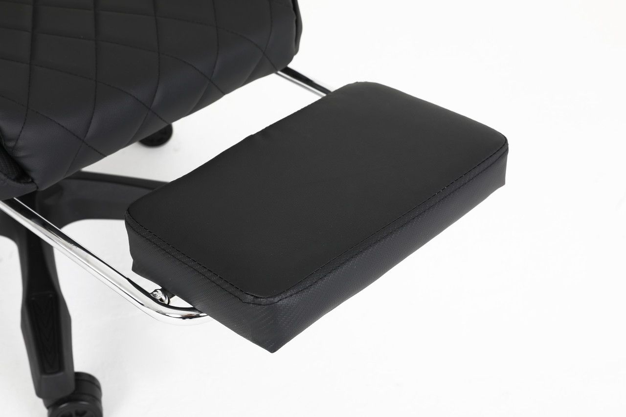 CARBON Quattro Gaming має оббивку з високоякісної екошкіри з ромбоподібною строчкою сидінні та спинці. Унікальністю даної моделі є карбонові вставки, що придають кріслу особливої елегантності.
