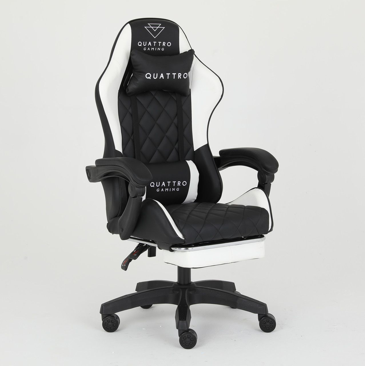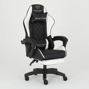 Комп‘ютерне крісло із підставкою для ніг CARBON Quattro Gaming Чорно-білий